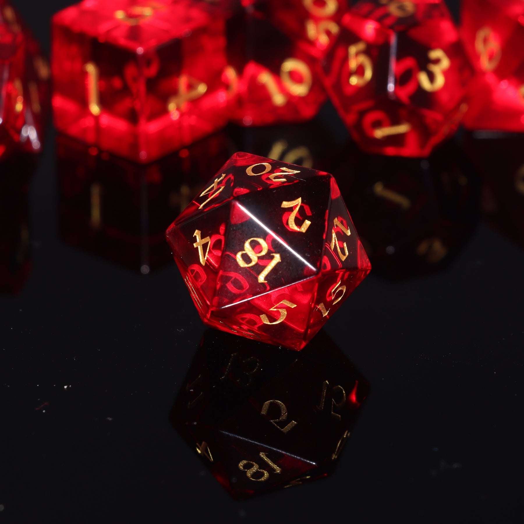 - This Garnet Red Glass D&D DICE set contains 7 dice: 1* D4, 1*D6, 1*D8, 1*D12, 1*D20, and 2*D10 (D10 & D00), which are packed in a black rectangular cardboard box. The black sponge with 7 grids in the cardboard box can not only protect the dice well during transportation, but also serve as a perfect gift to you and in the hands of your loved ones.