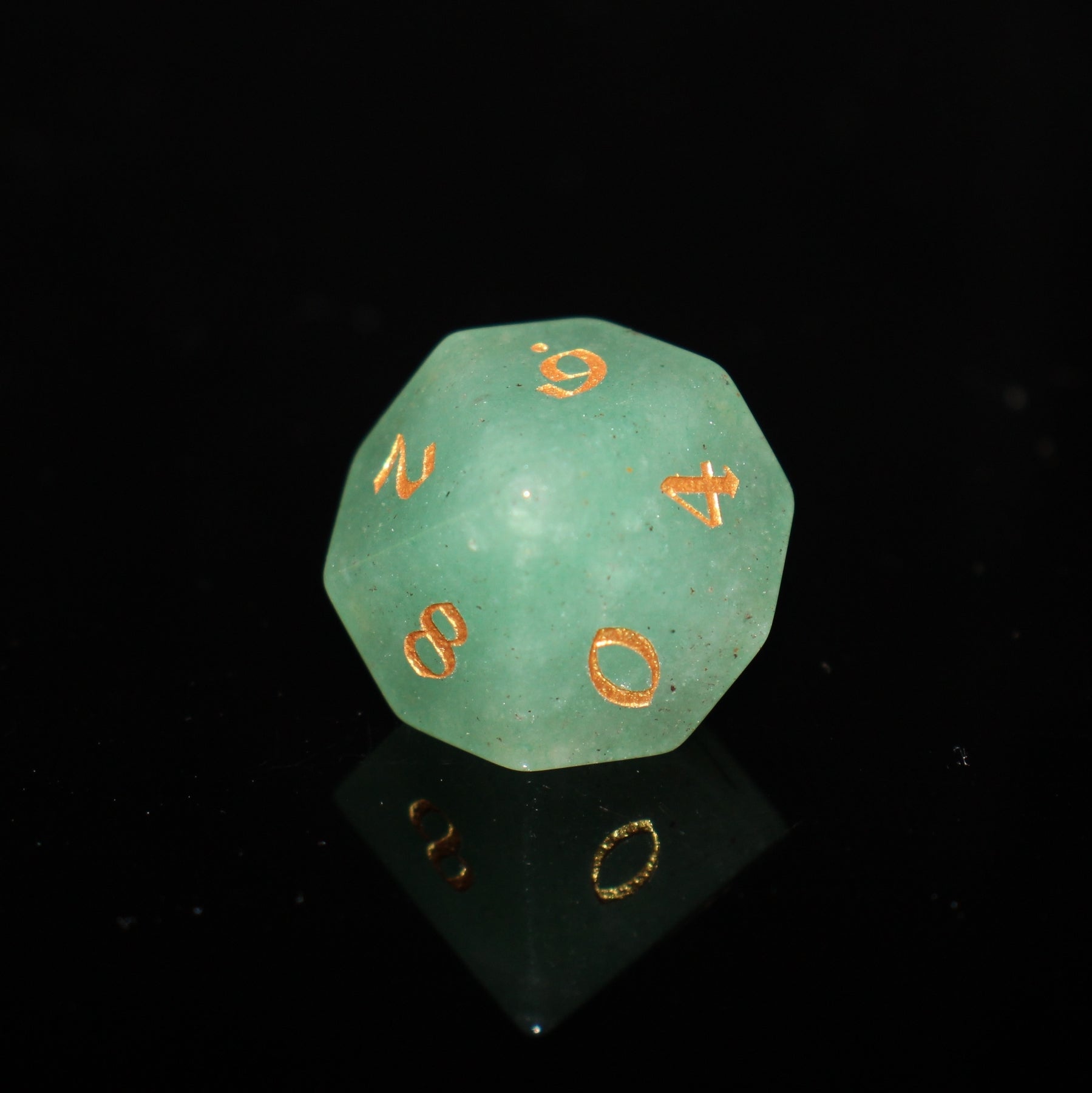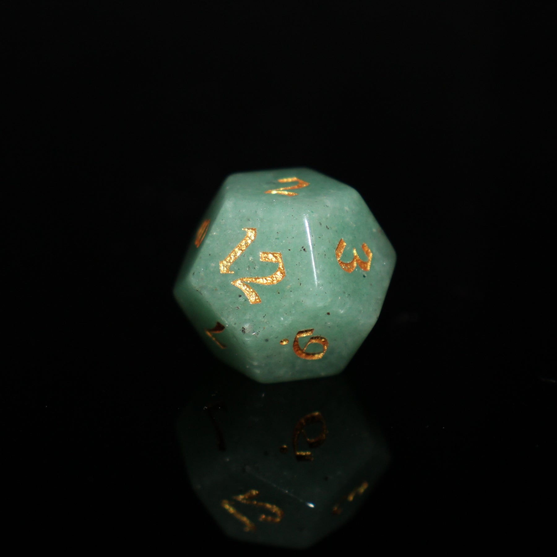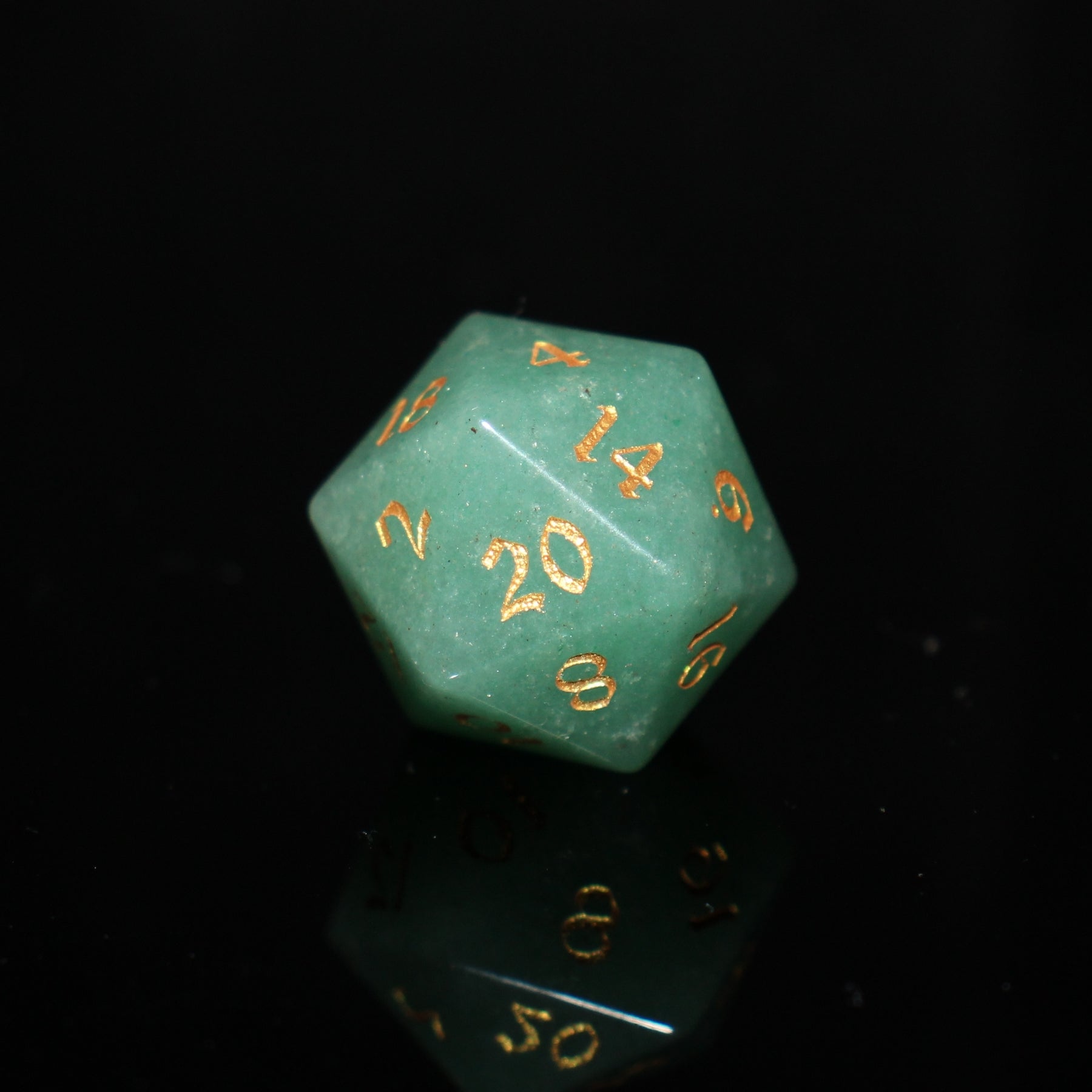 - Green aventurine is a gorgeous pale green color. Known as a stone of good luck, this is absolutely perfect for tabletop roleplaying gamers. Polished smooth and inked with easy-to-read gold numbers.