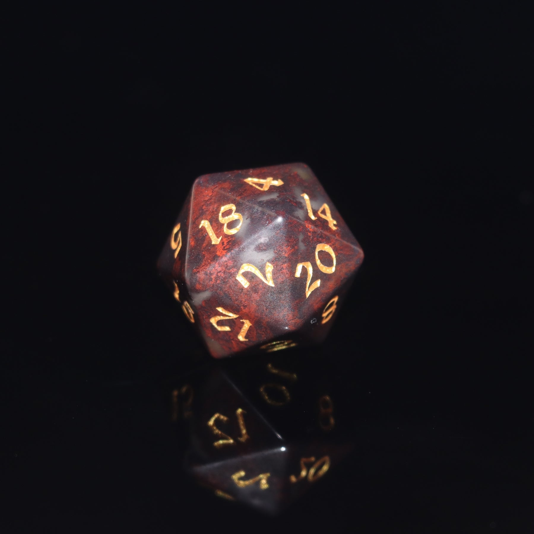 - The numbers of each die are laser engraved and won't fade over time. They are easy to read and suitable for casual play, without straining your eyes. Besides, the angular and stylized design of the font complements the unique texture and color variations of gemstones and glass.